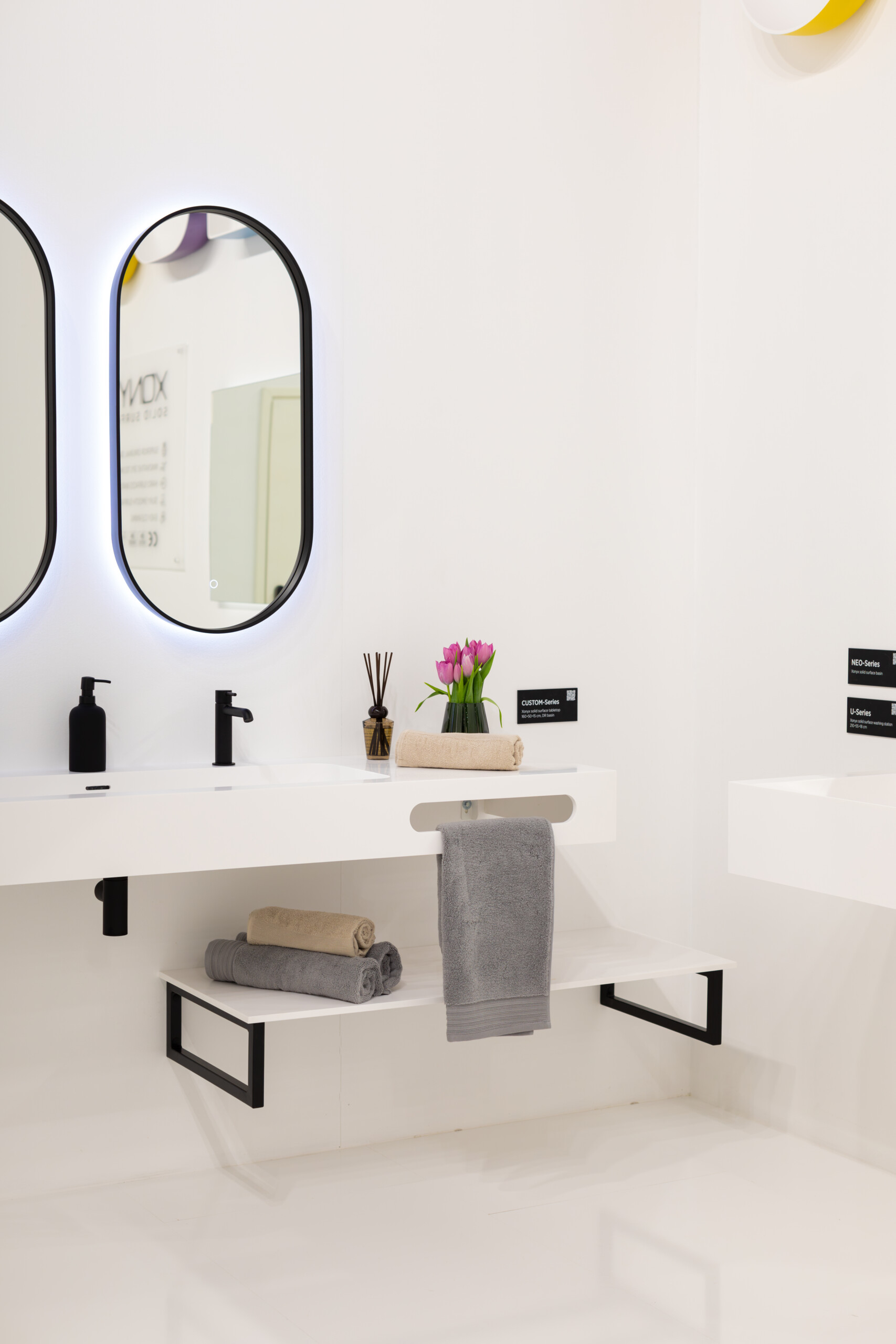 For project and OEM clients, we offer flexible configuration and customisation options: different pool sizes and seating layouts, integrated massage and air systems, LED lighting, as well as custom-length tabletops that match the dimensions and zoning of your spa or relaxation area. Xonyx™ solid surface products provide a smooth, hygienic and visually calm surface that fits a wide range of interior styles – from minimalist Nordic to more expressive luxury concepts.