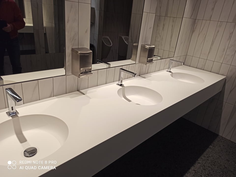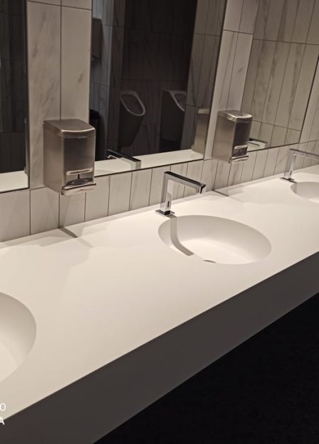 In hospitals, schools and social care environments, hygiene and ease of cleaning are essential. Non-porous, joint-minimising solid surface tops with integrated basins reduce dirt traps and make daily disinfection faster and more effective. The material is repairable and resistant to everyday wear, helping to extend product lifetime and reduce lifecycle costs.
