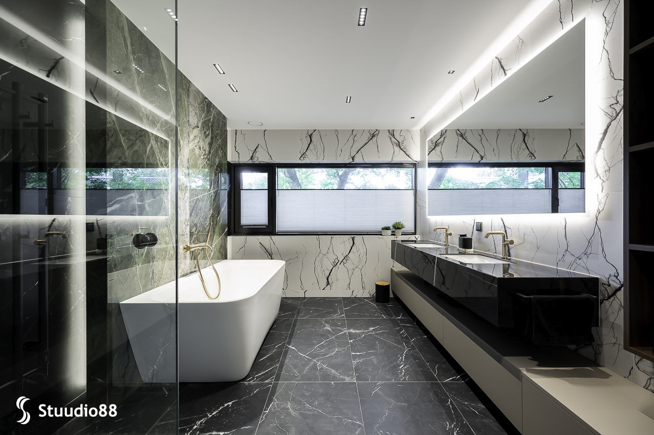 Balteco Como Wall Xonyx™ solid surface kivivann Nõmme männimetsade keskel asuvas eksklusiivses eramus