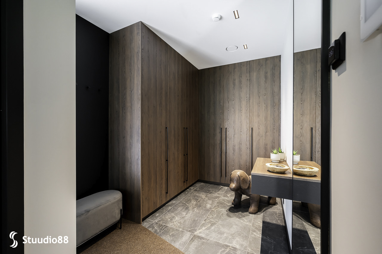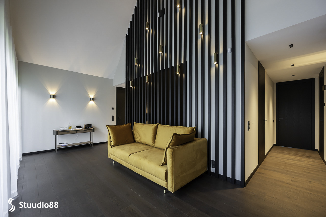 Minu ülesanne sisearhitektina oli tõlgendada seda arhitektuuri interjöörikeelde – viia kokku modernne vorm ja soojad elulised väärtused. Algsed ideed said alguse referentside ja inspiratsiooni analüüsist, kus ilmnes ühine arusaam: tulevane kodu võiks kanda tumedamat põrandatooni, mille tasakaaluks seisavad mõõdukalt heledad seinad. Sellest põhimõttest kasvas edasi kogu loo struktuur.