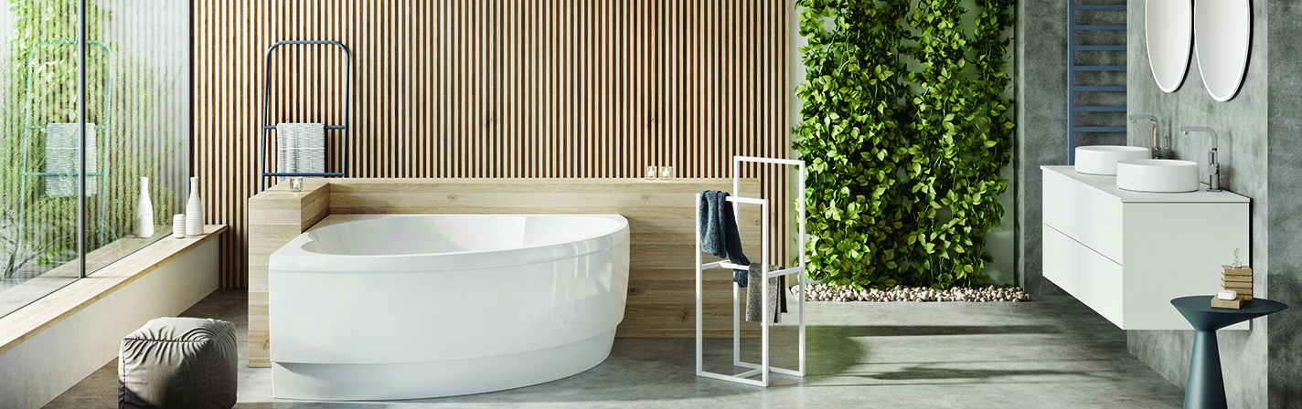 Kõrgekvaliteedilisest sanitaarsest akrüülist nurgavann kahes erinevas mõõdus liht- ja massaaživannina -