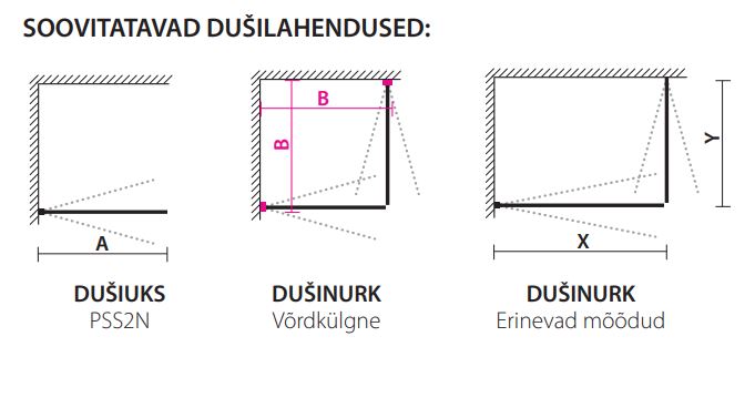 Universaalne 200 cm kõrgune kahe pendeluksega dušinurk