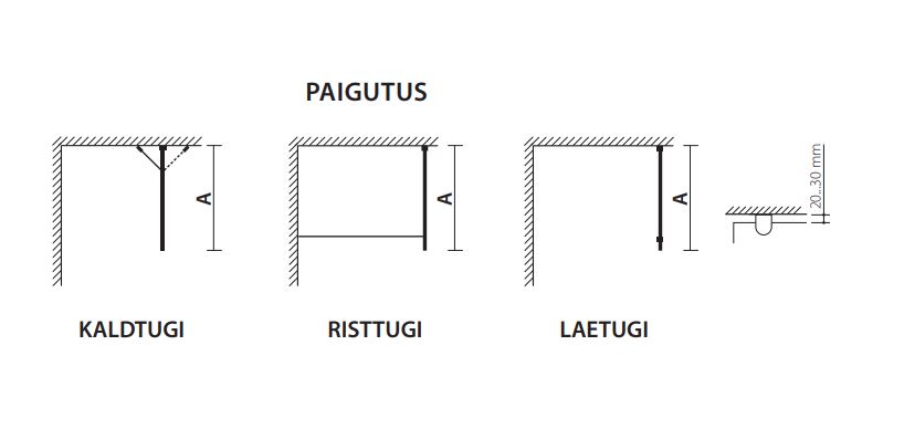 Fikseeritud ja praktiline standard- ja erimõõdus kõrgusega dušisein
