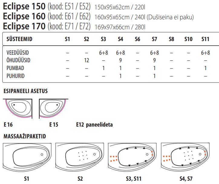 Eclipse 16 ja Eclipse 17 mudelitele dušiseina ei paku.