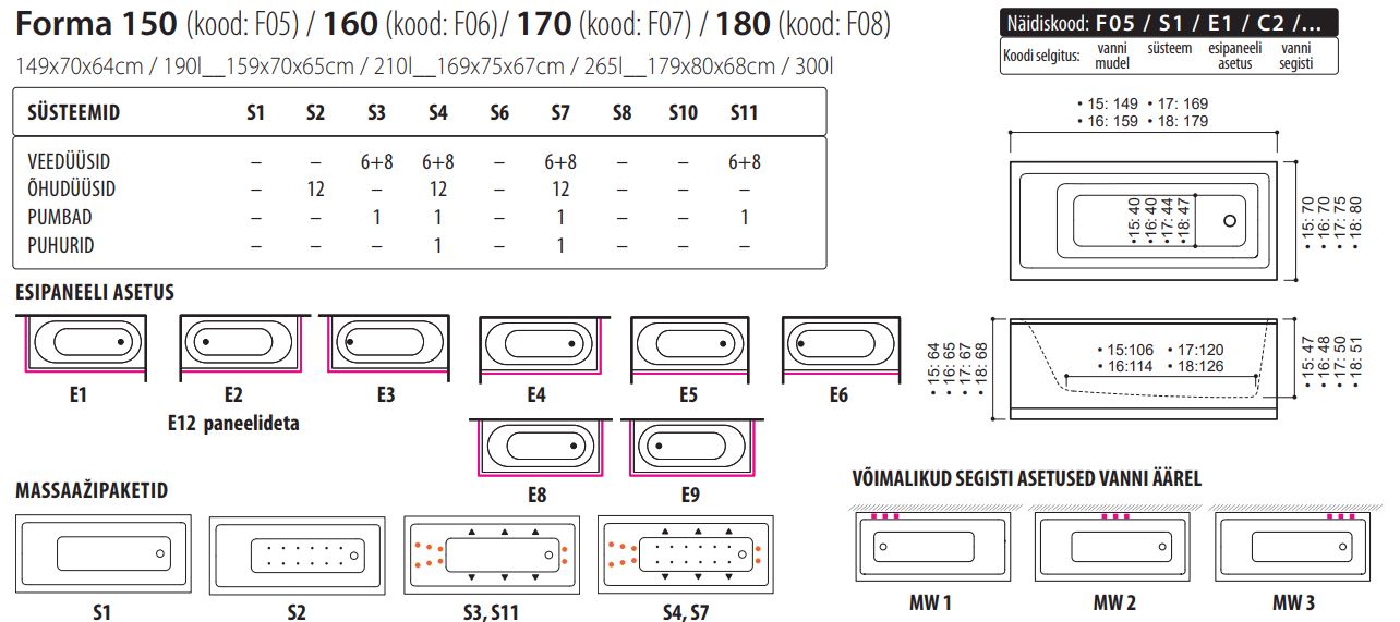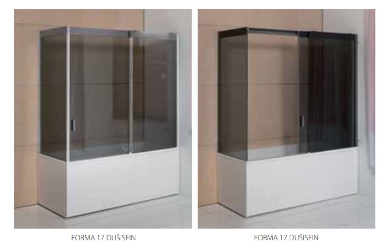 Forma 150/160/170/180 vannile pakume ka erinevaid dušiseinasid: pendel-dušisein (VS1); voldik-dušisein (VS2); fikseeritud dušiseinad (VS3; VS4; VS5). Kõik dušiseinad on valmistatud vastupidavast 6 mm karastatud klaasist ja sobivad täienduseks sirgjoonelistele akrüülvannidele. Valikut vaata seotud failide alt.