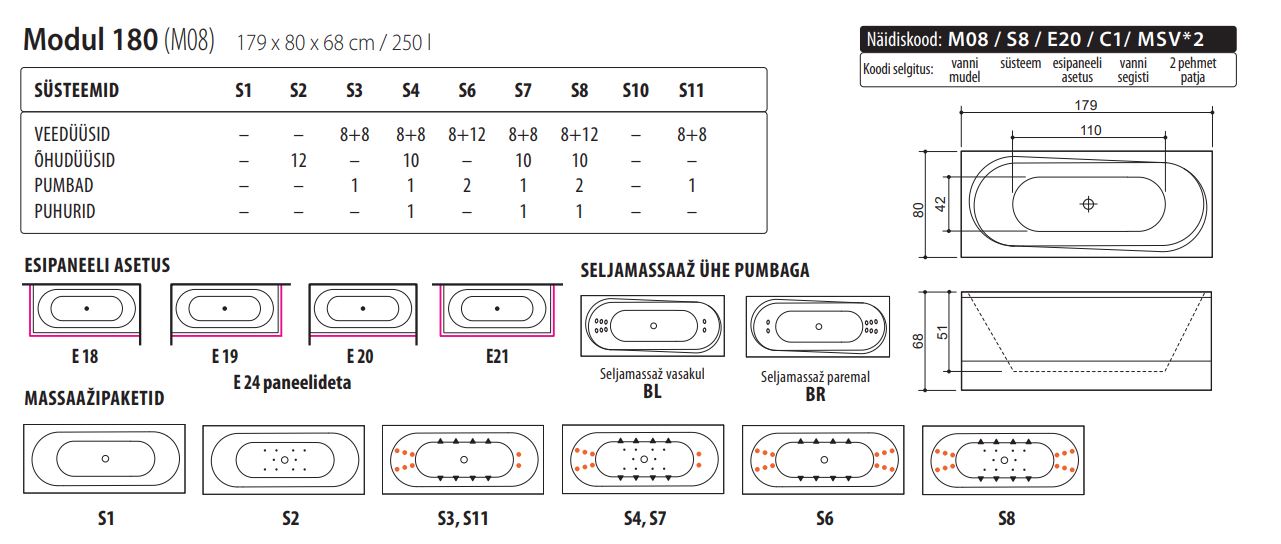 S11 SlimLine Hydro – veemassaaži ja Therapy programmiga vann