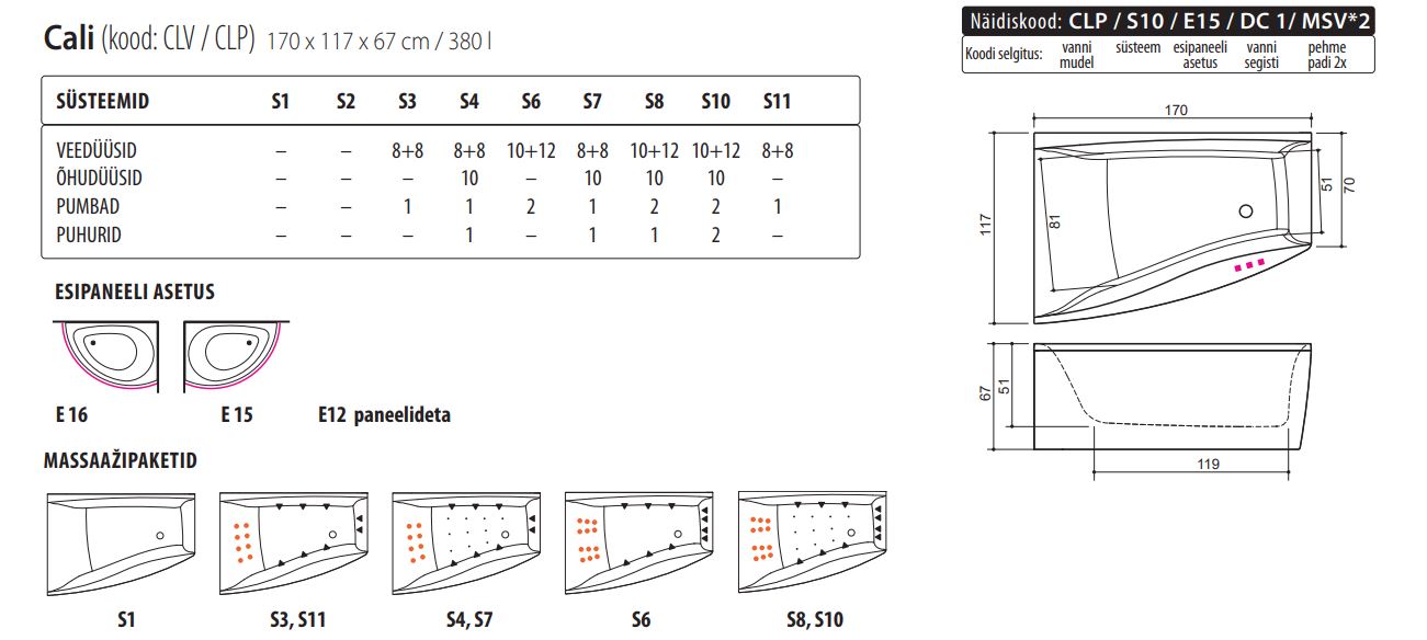 Cali on suurem tilgakujuline vann, mis loob vannituppa suursuguse ja avara atmosfääri. Vanni sügav ühest otsast avaram elegantne kuju tagab maksimaalse lõõgastuse, samas kui kvaliteetne akrüülmaterjal ning tugev konstruktsioon tagavad vastupidavuse aastateks. Ideaalne valik, kui soovid oma vannituppa midagi eristuvat ja nauditavat. Valikus ilma esipaneelita versioon või Panel+ akrüülpaneel magnetkinnitustega.