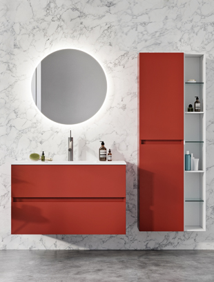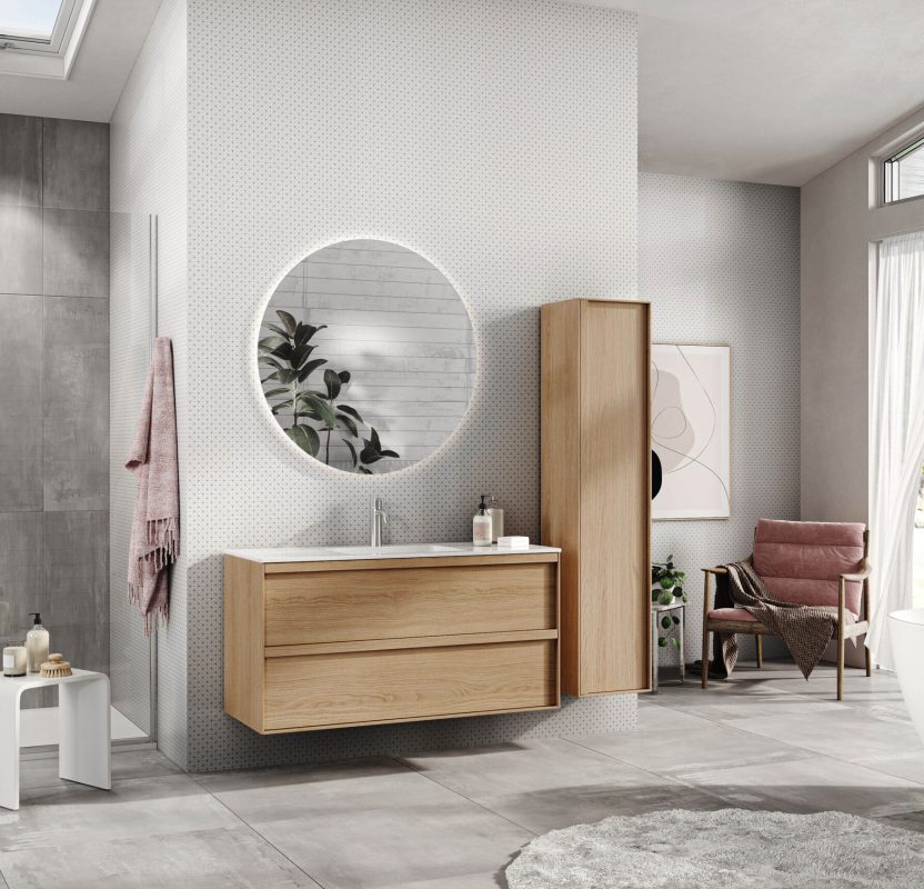 Balteco Vida vannitoamööbel minimalistliku disainiga, eelkomplekteeritud ja saadaval erinevates mõõtudes ja viimistlustes, modernse vannitoa sisustus.