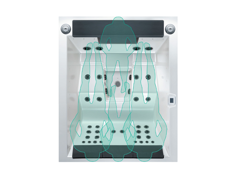 The Lounge 2 is an ideal choice for those seeking comfort and functionality in a compact format. With 2 lounge-style recliners and 2 ergonomic seats, it offers a relaxing hydrotherapy experience for up to four users.