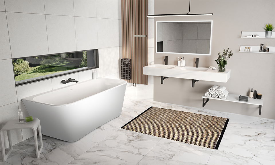 Back-to-wall Xonyx™ solid surface bath