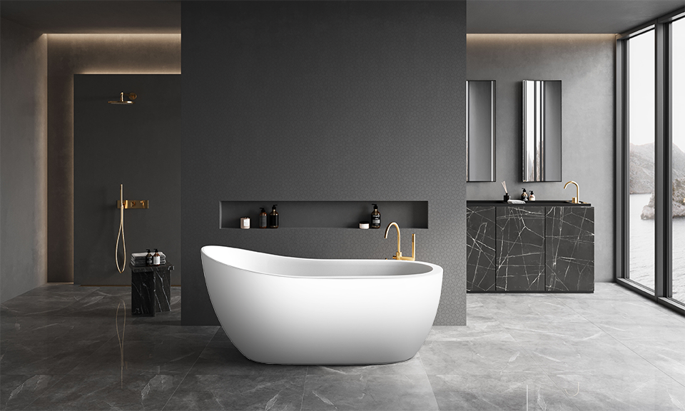 The flowing shape and minimalist aesthetic of the Gaia bathtub make it a perfect fit for modern interiors. Its smooth lines and harmonious design bring a sense of calm and balance to the bathroom. More than just a functional element, the bathtub is a true statement piece – a luxurious focal point that elevates the entire space.